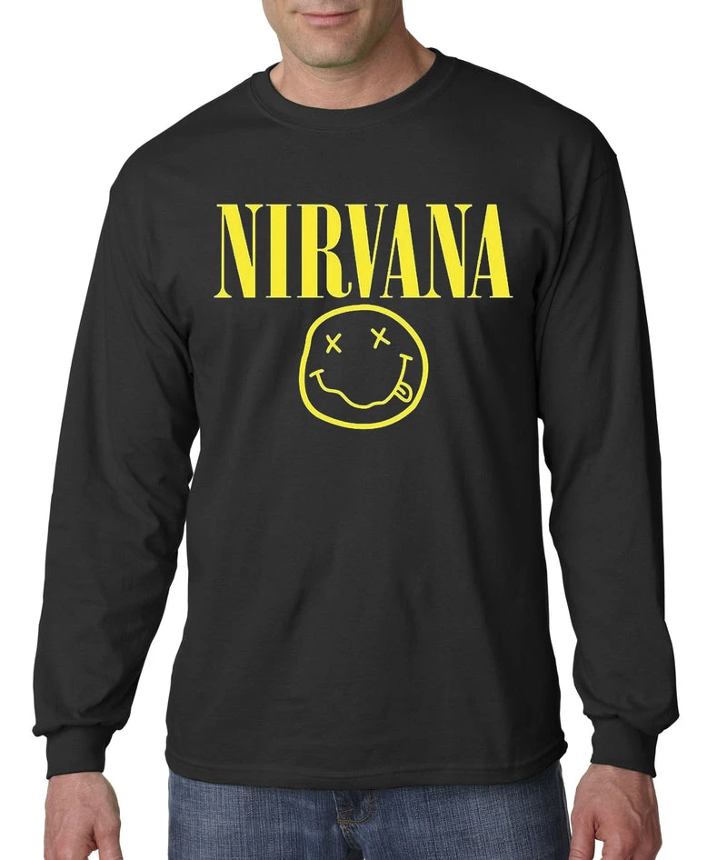 Band & Music Merchandise Long Sleeve Tee Nirvana Smiley Logo LS T-Shirt Black