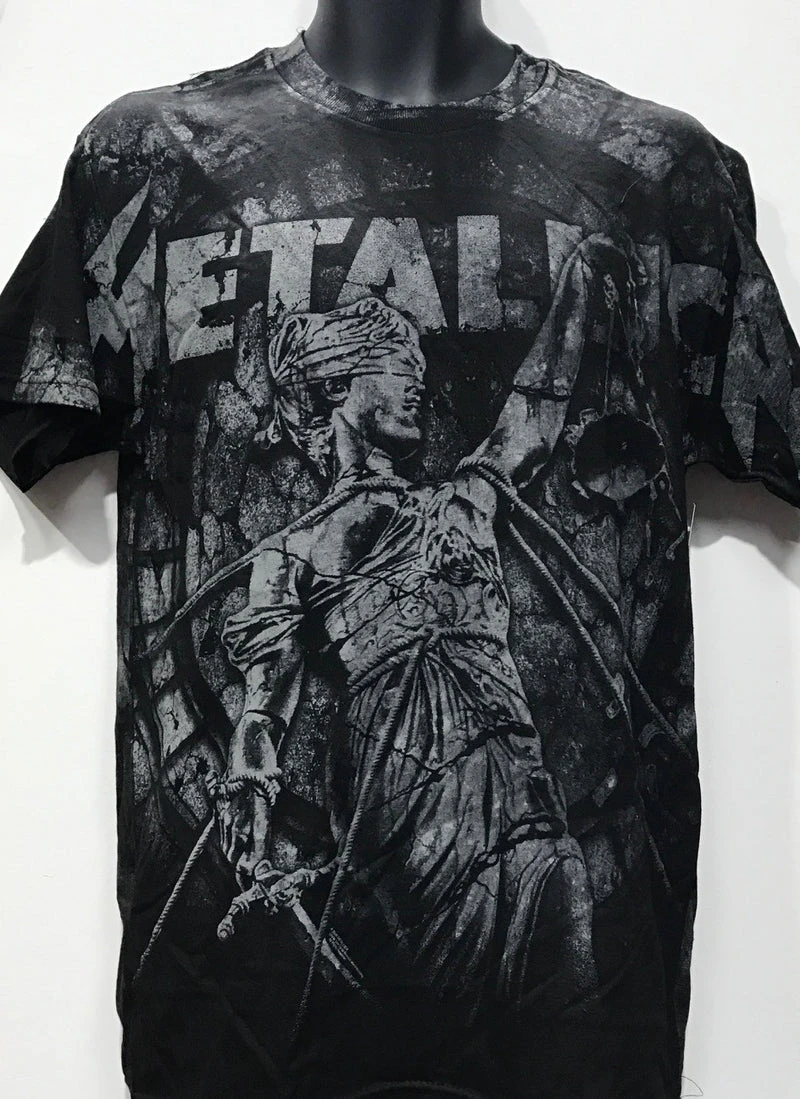 Metallica Men’s T shirt And Justice For All Allover Print Black Grey