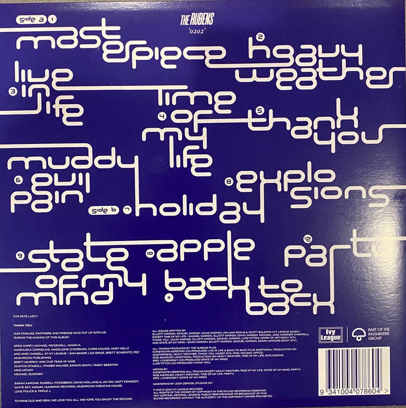 Universal Music Australia The Rubens 0202 Limited Edition Blue Vinyl LP